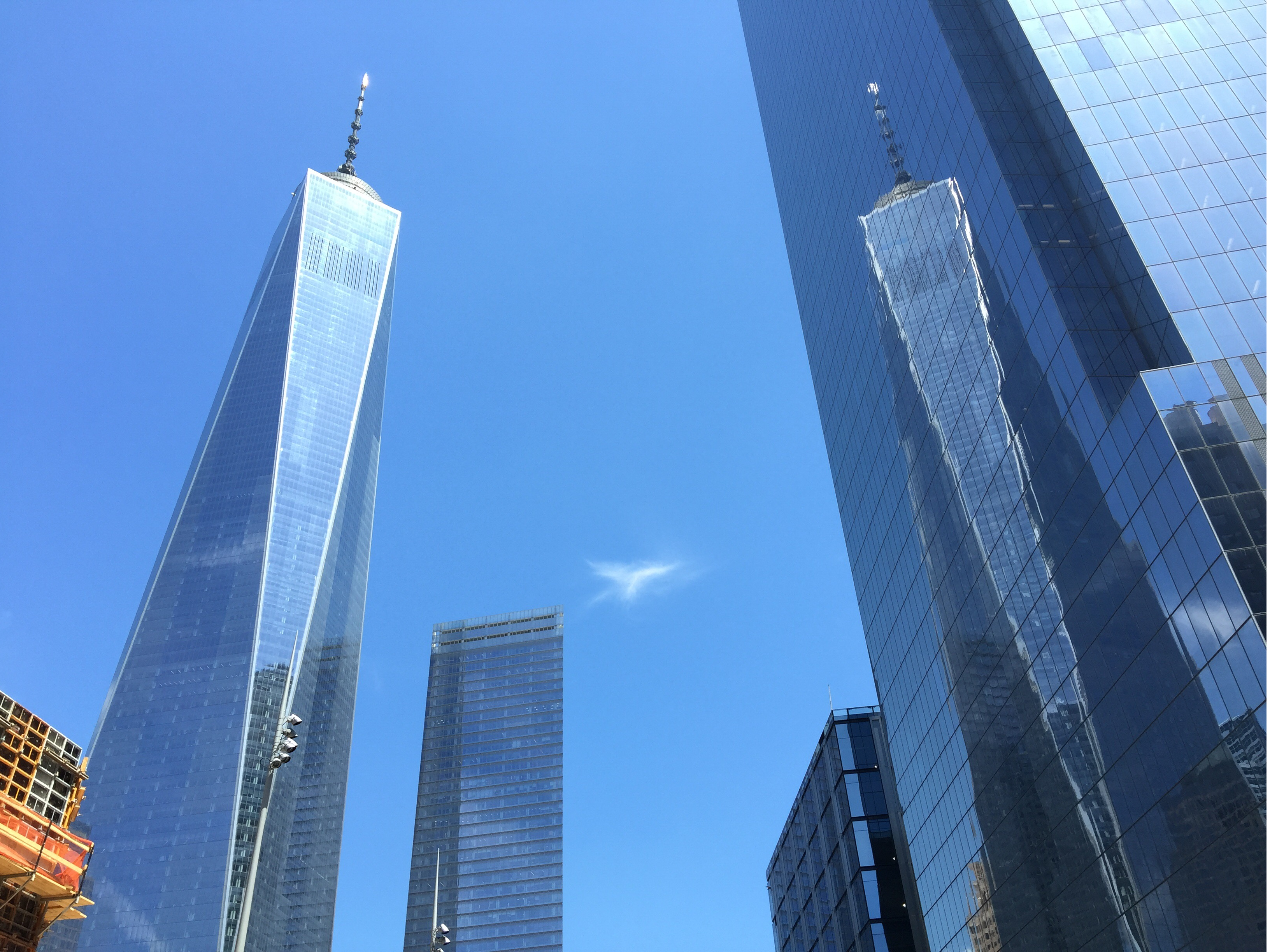 紐約世貿中心新世貿中心的OneWTC, WTC7(中)和WTC4(右)都已完工使用。