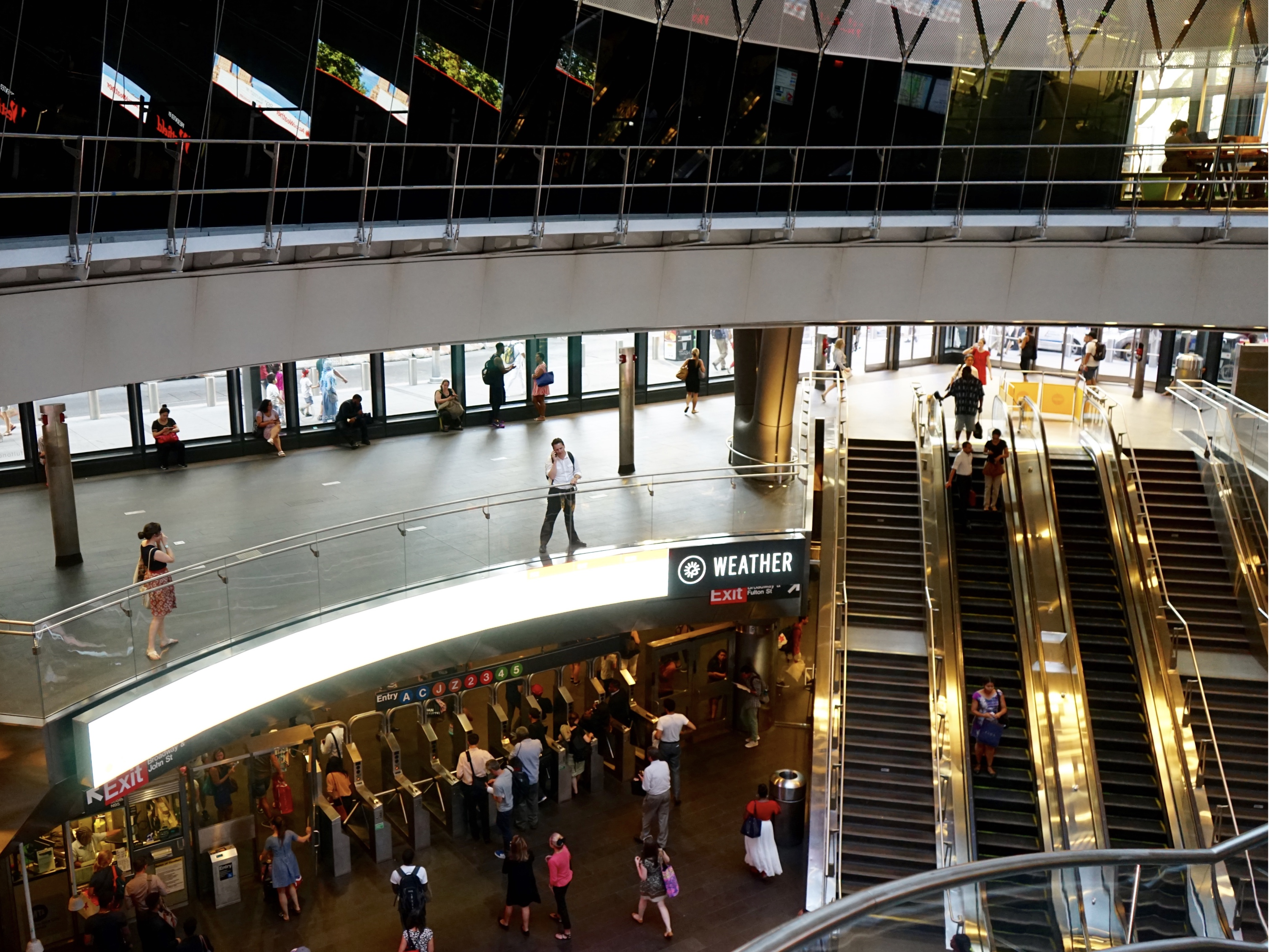 曼哈頓下城最大地鐵轉運站Fulton Center從Fulton Center不需要到地面上就可以走到Oculus,哈德遜河畔的Brookfield Place